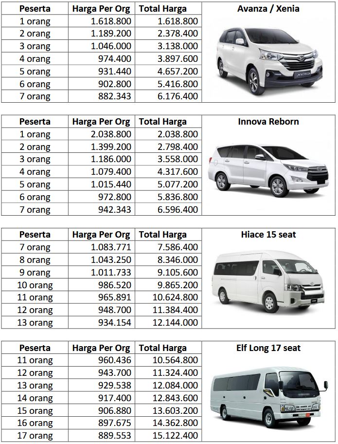 • Supir Merangkap Guide (Minivan, Innova, Elf & Hiace)