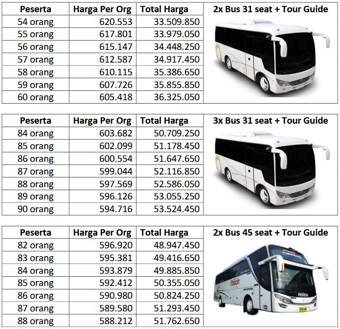 - Tip Supir Merangkap Guide (min. Rp75.000 / hari)
