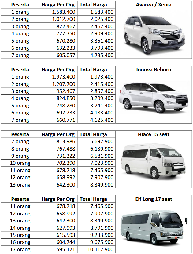 - Supir Merangkap Guide (Minivan, Innova, Elf & Hiace)