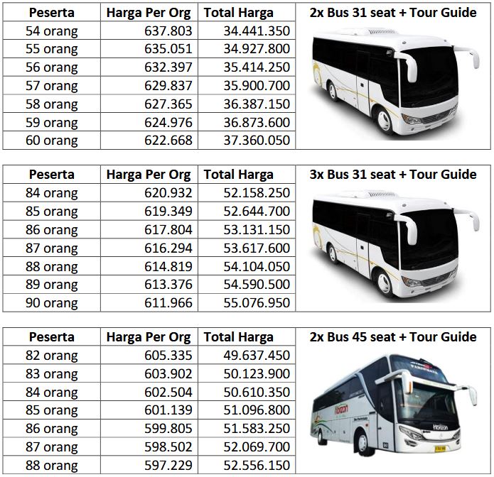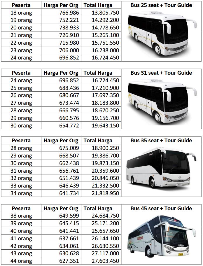 - Tip Supir Merangkap Guide (min. Rp75.000 / hari)