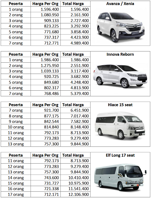 - Supir Merangkap Guide (Minivan, Innova, Elf & Hiace)